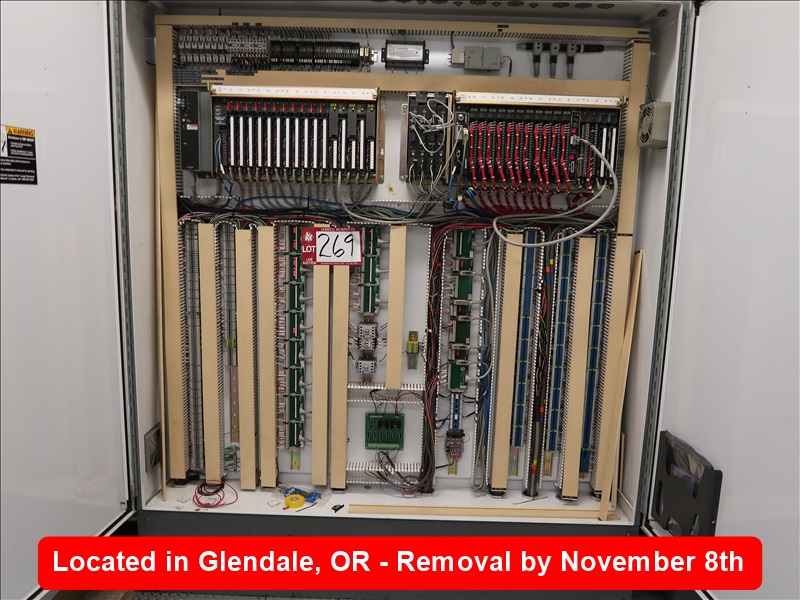 PLC 5/80E W/(12) LINEAR POSITIONING, (1) NETWORK, (2) ENCODERS, (2) DC INPUT & (4) NON-REDUNDANT MODULES, ALLEN BRADLEY 1771 W/(1) AC INPUT & (2) ANALOG INPUT & (2) ANALOG OUTPUT MODULES (NO WIRE OUTSIDE OF BOX)