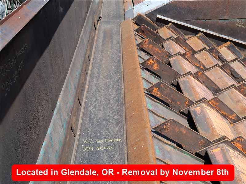 24" X APPROX 27' LOG OUTFEED BELT FROM STEP FEEDER, H&T DRUMS, MARKED TROUGH & SUPPORTS