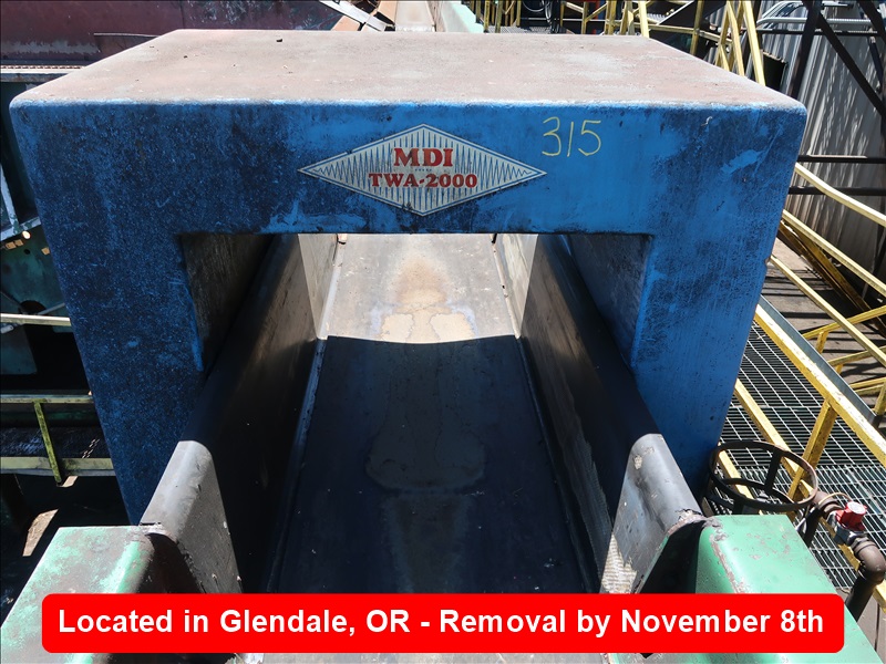 WHOLE LOG METAL DETECTOR, 36" X 44', CR85 CONTROLLER W/SERIES 2000 CHASSIS, 30" X APPROX 86' FEED THRU BELT W/(2) SETS OF 5-ARM LOG KICKERS