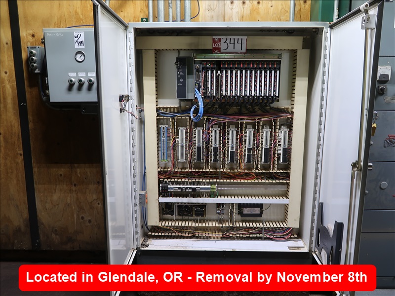 PLC CABINET W/ALLEN BRADLEY PLC 5/40L W/(1) LINEAR & (1) ANALOG INPUT, (7) AC INPUT & (6) AC OUTPUT MODULES W/BLOWER/FEEDER CONTROL BOX (NO WIRE OUTSIDE OF BOX)