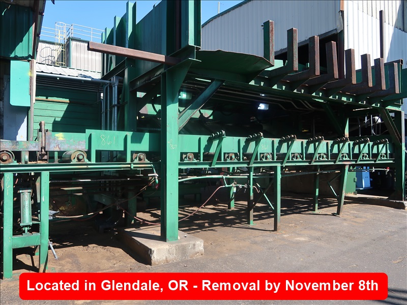 APPROX 33' 2-SECTION HYDRAULIC DRIVEN INFEED ROLLCASE W/(13) 8" X 30" ROLLS, TIMBER TURNER, (2) HYDRAULIC MOTORS, TIMBER TURN ARM & SUPPORTS