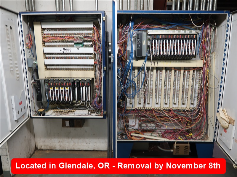 LOT, (2) PLC CABINETS W/PLC 5/40E & REMOTE PLC (FOR LOT 555 GANG, NO WIRE OUTSIDE OF BOX)