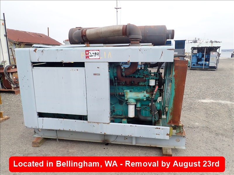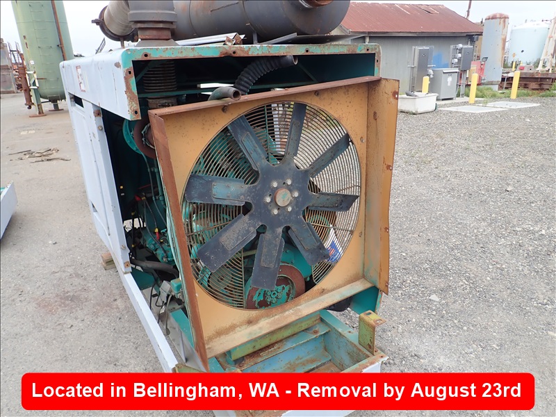 155 KW SKID MOUNTED PORTABLE GEN SET, CUMMINS NT535 DIESEL, RADIATOR IS ON PALLET NEXT TO GEN SET, HOUR METER READS: 109
