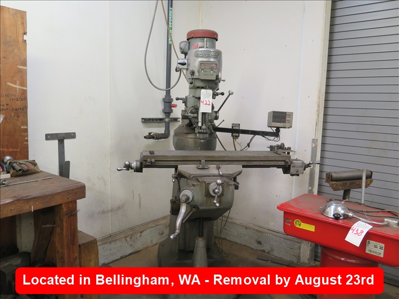 2 HP VERTICAL MILLING MACHINE, 9" X 48" T-SLOT POWER FEED TABLE, MITUTOYO DRO, 208V, 3 PHASE