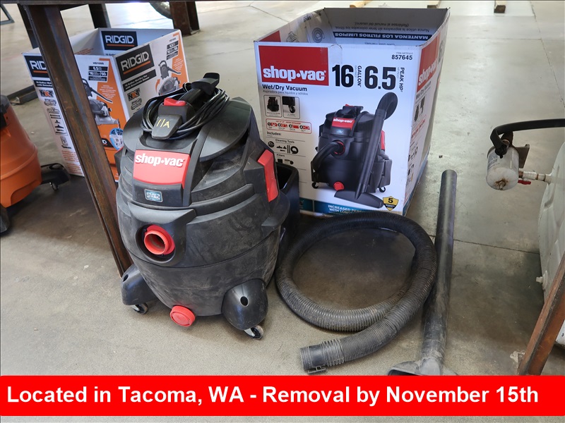 SHOP VAC, 6-1/2 HP, 16 GALLONS, REMOVABLE LEAF BLOWER (BOUGHT NEW 9/9/19)