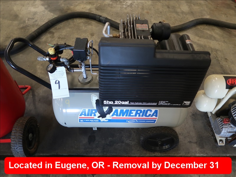 5 HP TANK MOUNTED COMPRESSOR, 10.4 SCFM, 20 GALLON TANK