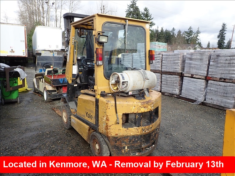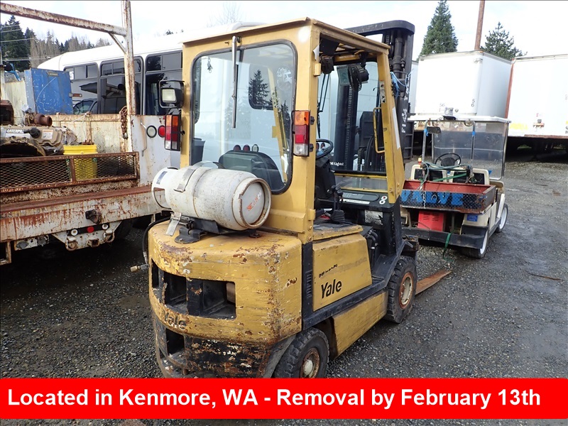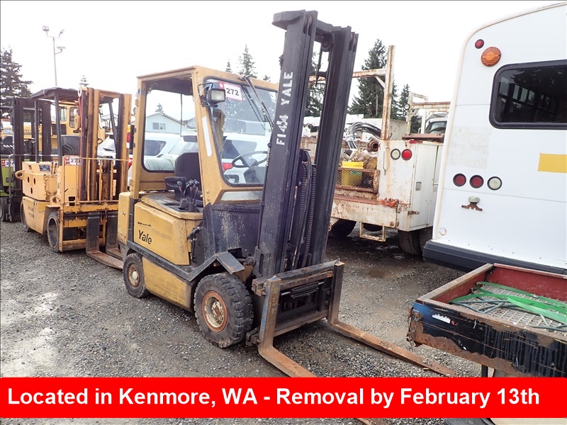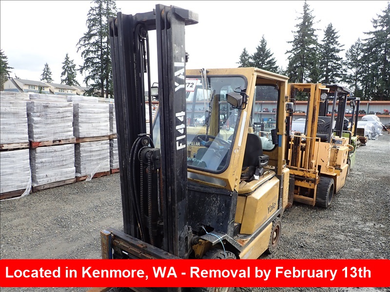 3,700 LB CUSHION TIREFORKLIFT, 218" FORK HEIGHT,3-STAGE MAST, SIDE SHIFT,4 CYL, LPT, HOUR METER READS:22,641 *CRANKS, WILL NOTSTART*