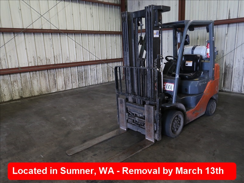 **LOT 1001 THE TOYOTA FORKLIFT MUST REMAIN ON SITE UNTIL 12 PM, FRIDAY,