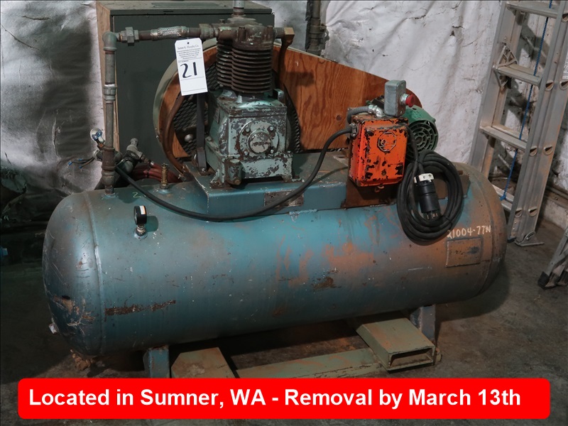 HORIZONTAL TANK MOUNTED COMPRESSOR W/3 HP/1,720 RPM MOTOR, 220/440V, ATTACHED ELECTRICS, 200 PSIG TANK