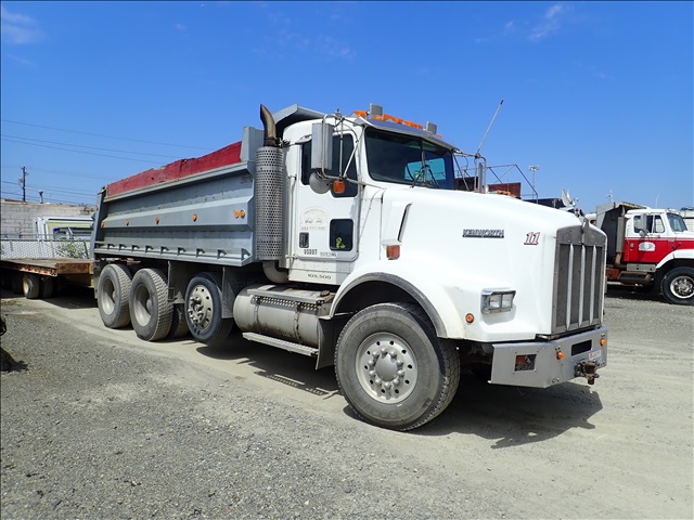 1997 KENWORTH T800B TRI/A DUMP TRUCK, CUMMINS N14-435E, RTLO18718B-18 SPEED, DS461P-46,000 REARS W/4.33 RATIO, SPRING BEAM SUSP, DROP AXLE, 16' 6'' STEEL BOX, PLUMBED FOR PUP, S/N: 1NKDX2EX9VR751761