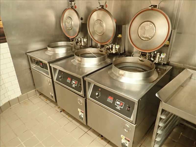 GROUP OF (3) BKI FKM-F 24” PRESSURE FRYERS ON CASTERS