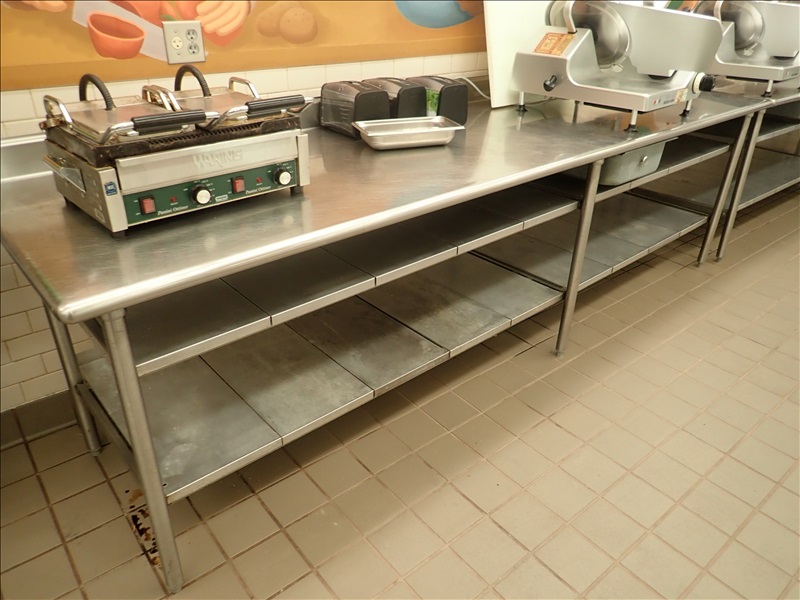 (2) 120” S/S TABLES W/BACK SPLASH & DRAWERS
