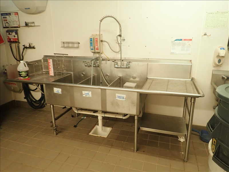 106” 3-COMPARTMENT S/S SINK W/(2) FAUCETS, RINSE W...