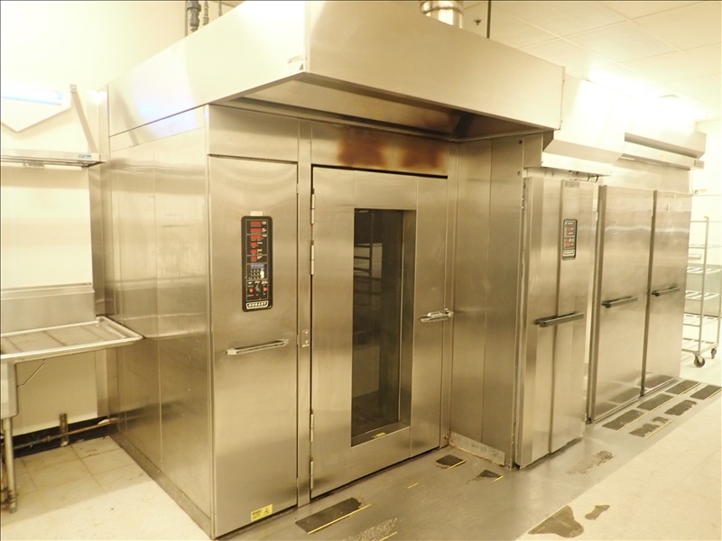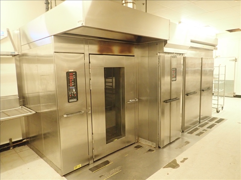 HOBART H0210G2 290,000 BTU 72”, 2-RACK ROTARY BAKERY OVEN WITH S/S STEAM HOOD & CONTROLS
