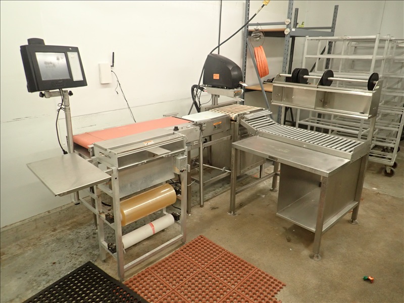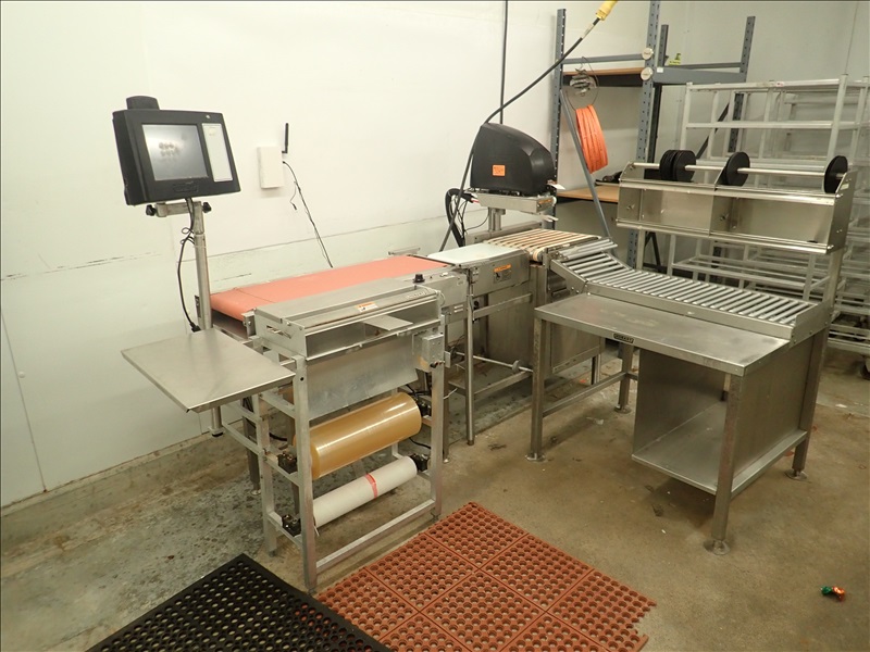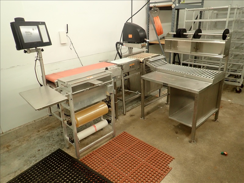 HOBART LABELING STATION TO INCLUDE: W3-2C WRAPPER, EPCP CONTROLS, SP 12” CONVEYOR, CLA-2 SCALE, EPP PRINTER & OUTFEED ROLL CONVEYOR