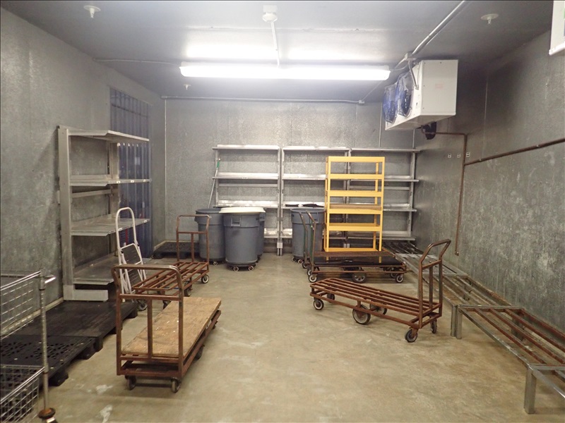 KALT APPROX. 16’X85’X10’ 3-COMPARTMENT WALK-IN MEAT COOLER, 60” DOOR, (2) DOUBLE SWING MAN DOORS, DOUBLE SWING PASS THROUGH DOORS, (3) ANTHONY DOORS, LARKIN 2-FAN, (2) LARKIN 3-FAN EVAPORATORS, (2) HEAT CRAFT 2-FAN EVAPORATORS, LIGHTS, MODULARM DOOR MONIT