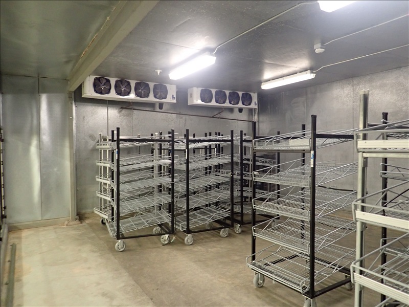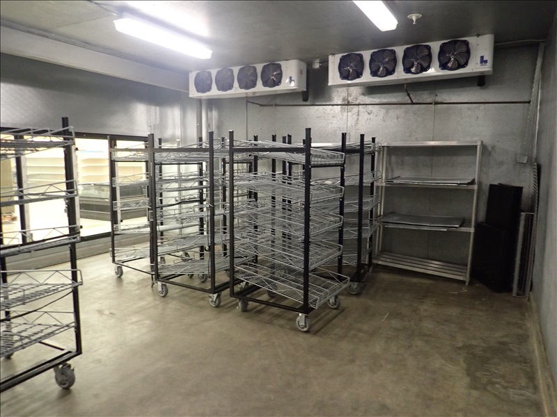 APPROX. 24’X20’X10’ WALK-IN DAIRY DISPLAY COOLER, (9) ANTHONY GLASS DOORS, HILL PHOENIX 60” DOOR, (2) LARKIN 4-FAN EVAPORATORS, LIGHTS & MODULARM DL-35 DOOR MONITOR