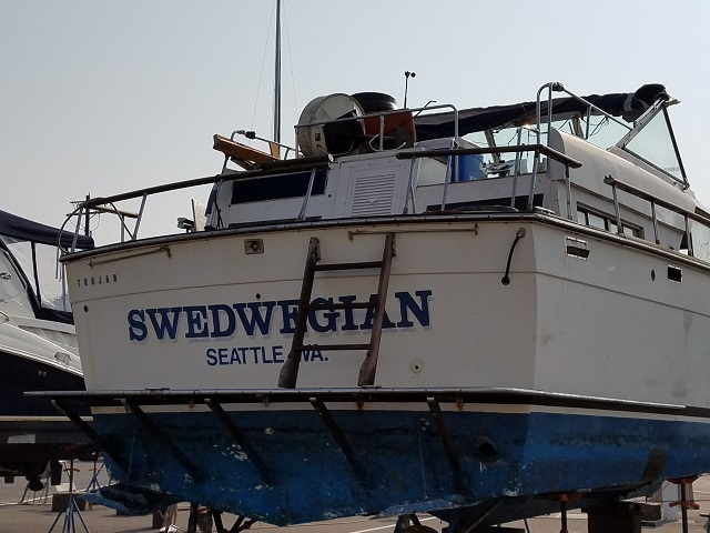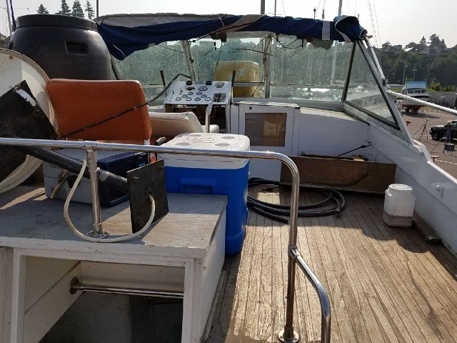 36' POWERBOAT WHITE HULL / SOME CANVAS INCLUDED / INBOARD MOTOR