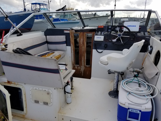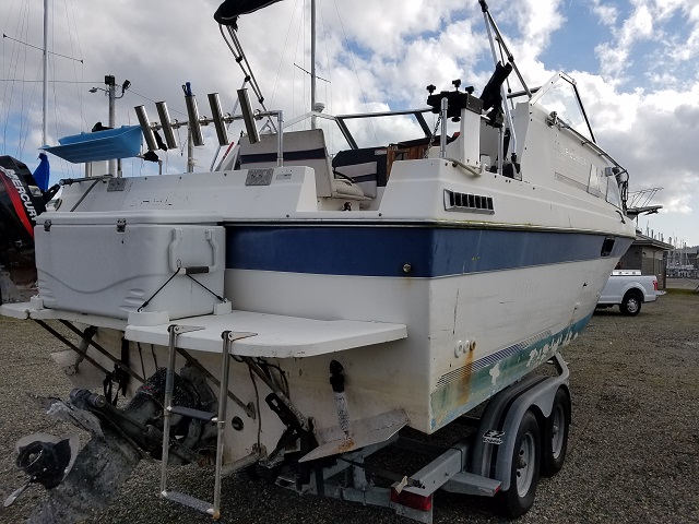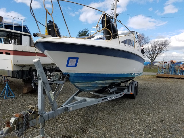 25' POWER BOAT WHITE-BLUE HULL / INCLUDES MERCURY O/B MOTOR W/ EZ LOADER GALVINIZED TRAILER