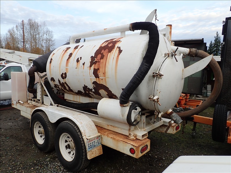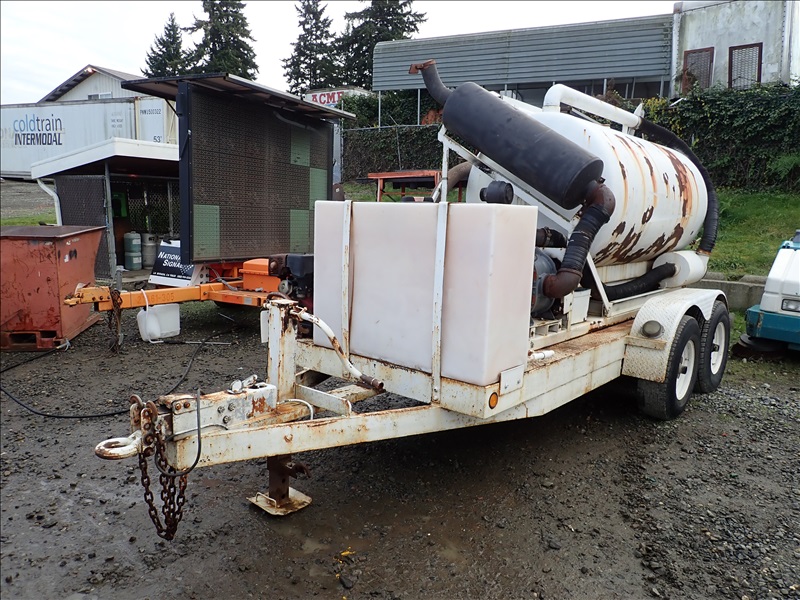 T/A VACUUM TRAILER, 40 HPDEUTZ DIESEL, UNIVERSAL 59URAI THC BLOWER, HONDAPRESSURE WASHER, 800 GALLONDEBRIS TANK, 100 GALLON CLEANTANK, HYD DUMP