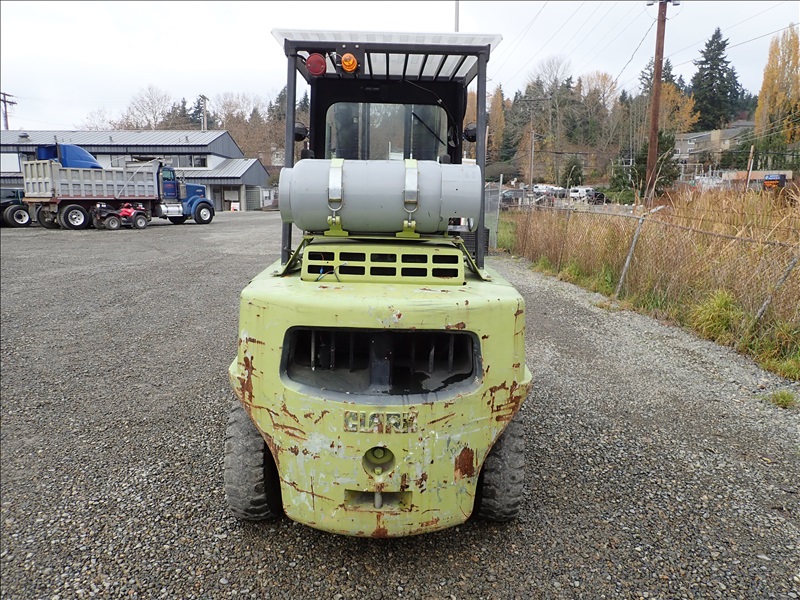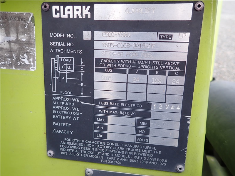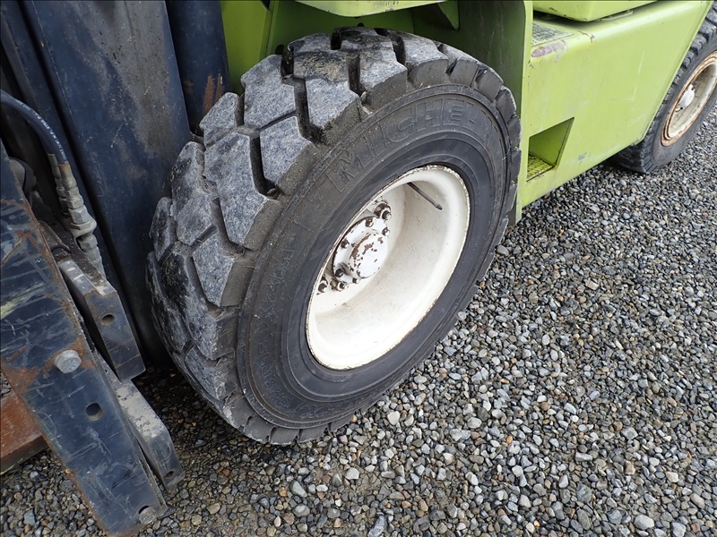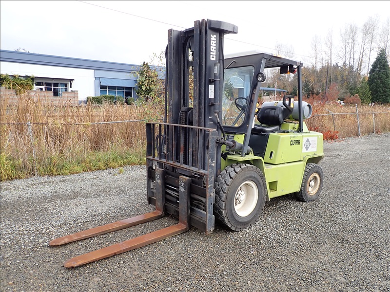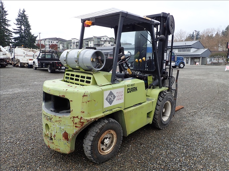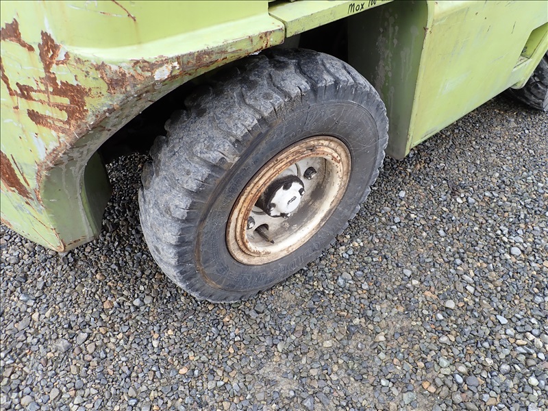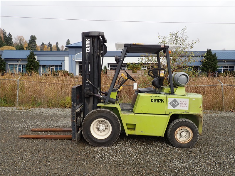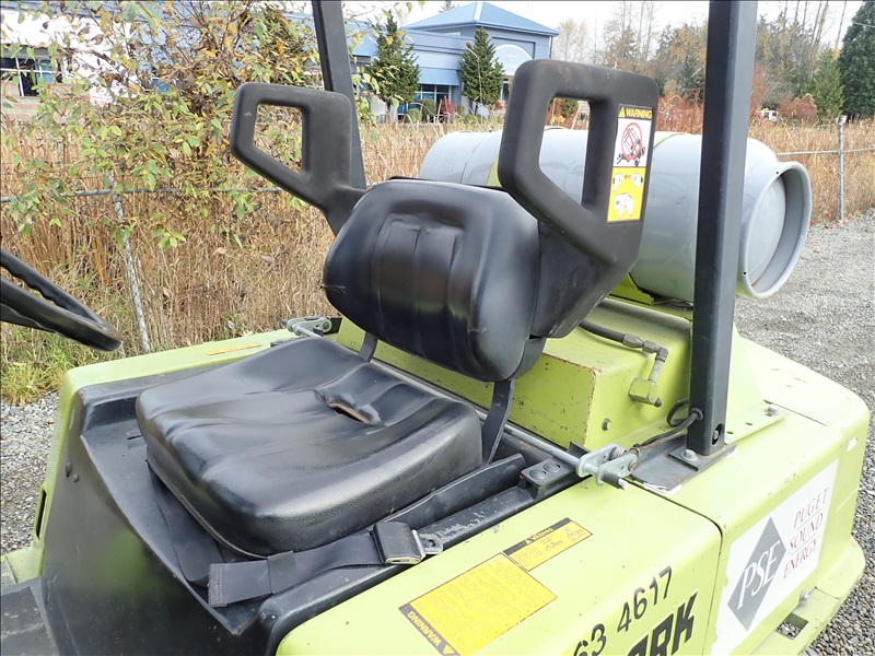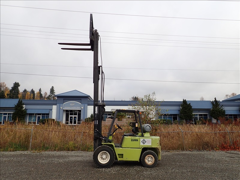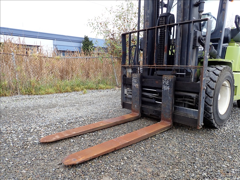 8,000 LB PNEUMATIC TIREFORKLIFT, 199" FORK HEIGHT,3-STAGE MAST, SIDE SHIFT,FORK POSITIONERS, HYDACCUMULATOR, PERKINS 4 CYL LPGHOUR METER READS: 2,633