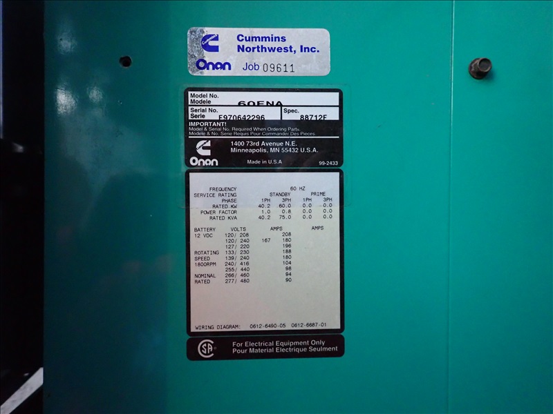 60 KW 3 PHASE, 50 KW SINGLEPHASE, 120/208, 120/240,127/220, 133/230, 139/240,240/416, 255/440, 266/460,277/480V, FOR V8 LPG/NATURALGAS STANDBY GENERATOR