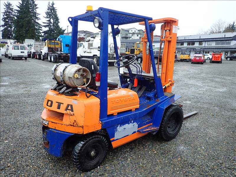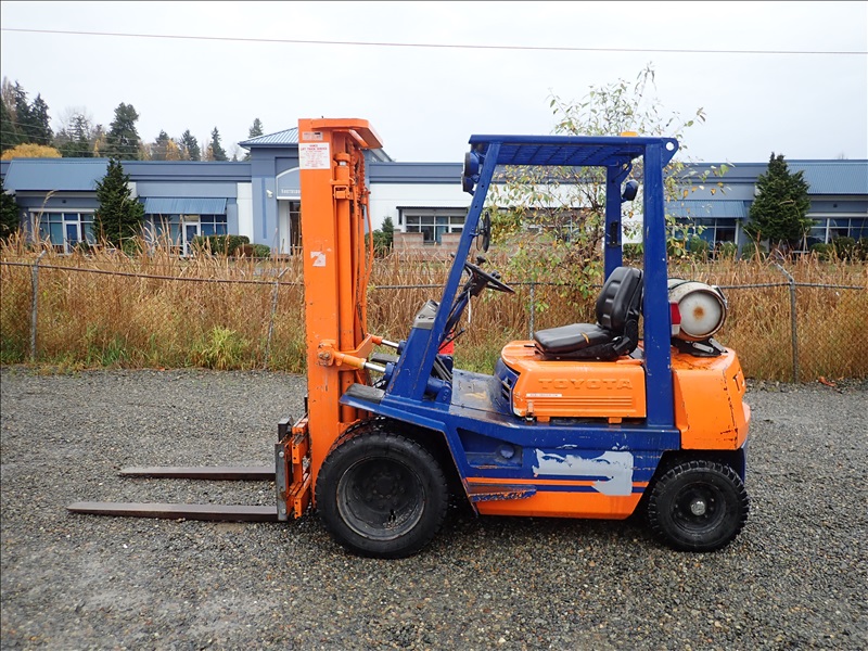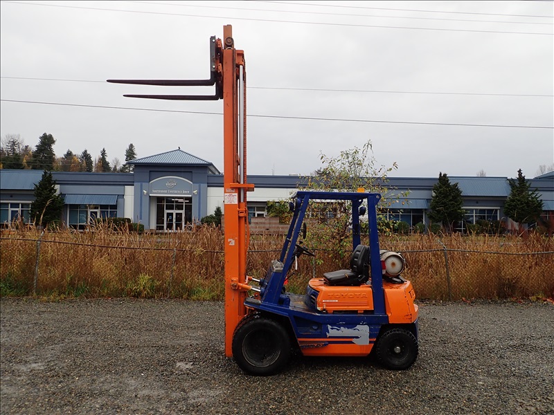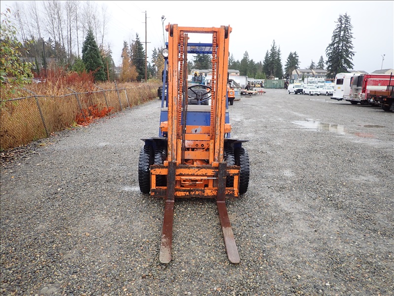 DUAL PNEUMATIC TIRE FORKLIFT,132" FORK HEIGHT, 2-STAGEMAST, SIDE SHIFT, 4 CYL LPGHOUR METER READS: 709