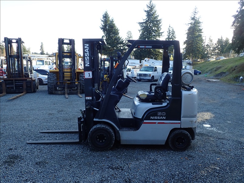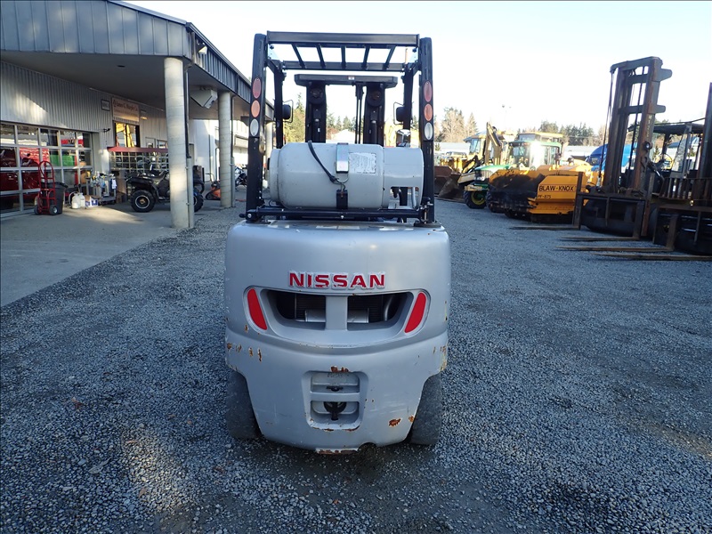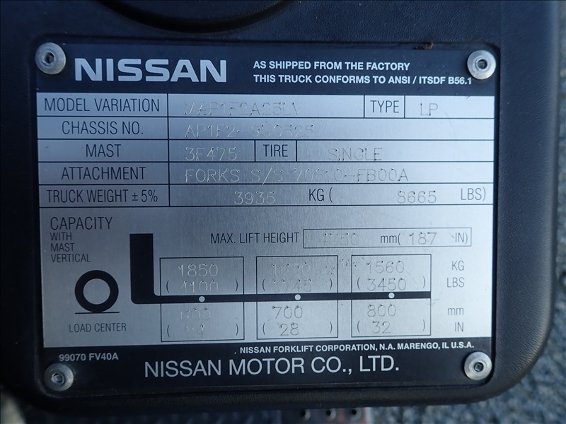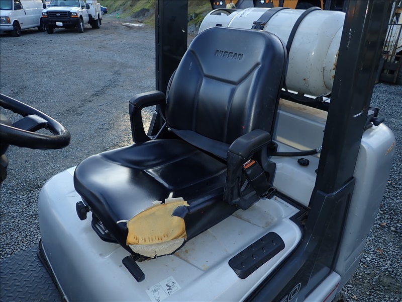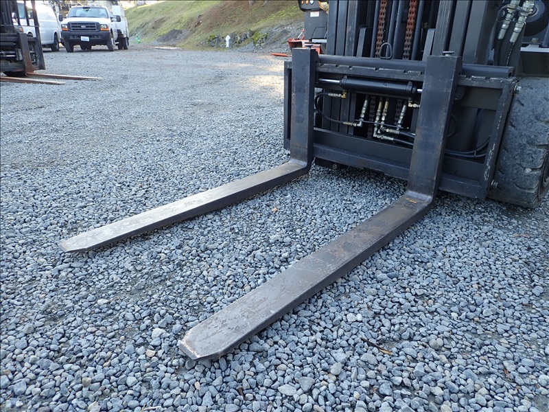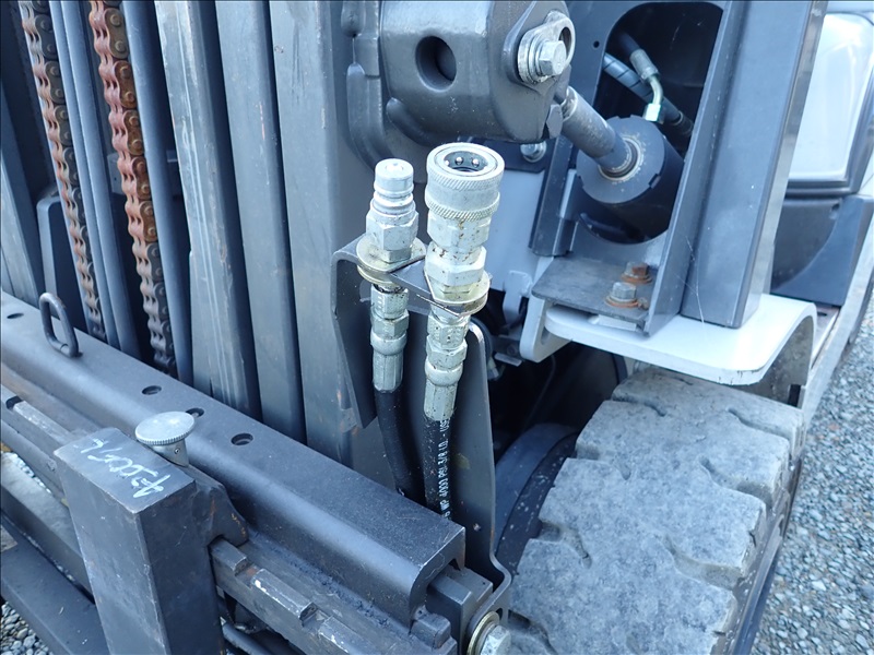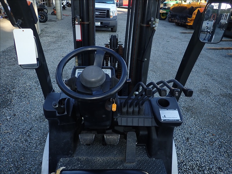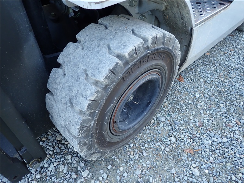 4,100 LB SOLID TRACTION TIRE FORKLIFT, 187" FORK HEIGHT 3 STAGE MAST, SIDE SHIFT, 4CYL LPG, HOUR METER READS 744
