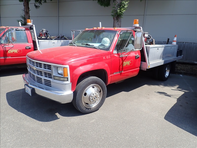 FLATBED UTILITY TRUCK, V8, AUTO, 12' BED, BOXES, AUX TANK