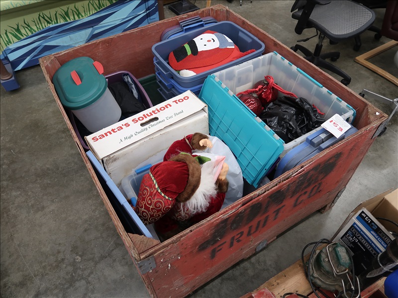 LOT, ASSORTED CHRISTMAS DECORATIONS & STORAGE BINS (BIN NOT INCLUDED)