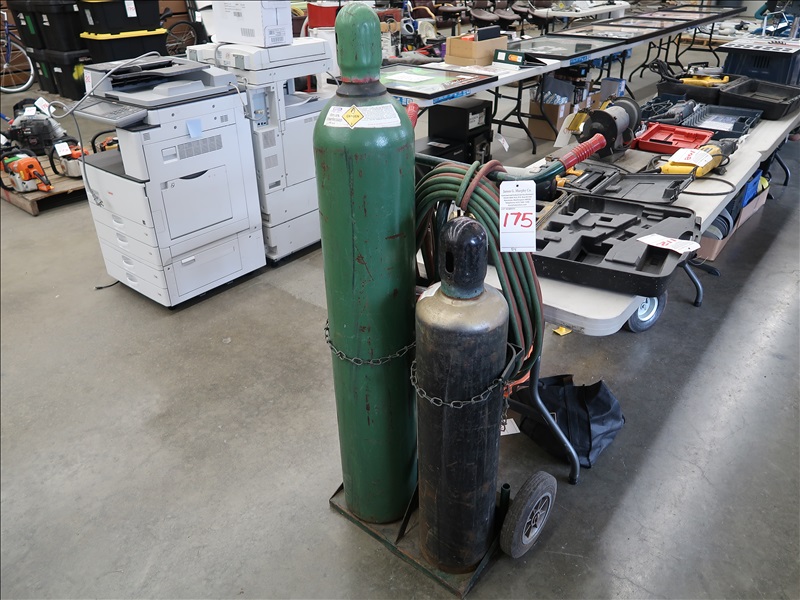 OXY/ACET CART, REGULATORS, HOSES & CONTENTS (TANKS MAY BE LEASED)