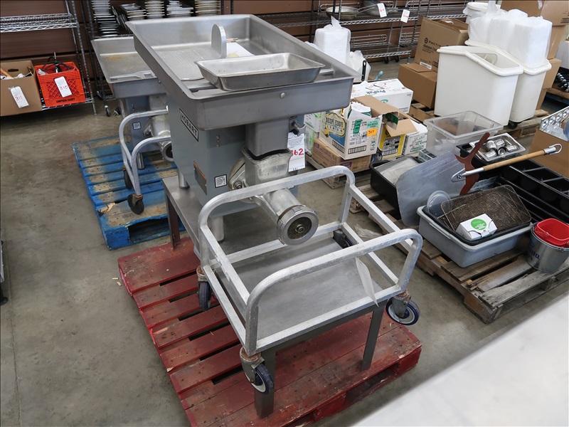 GRINDER W/SS EQUIPMENT STAND, TRAY CART & EXTRA PARTS, 200V, 3 PHASE
