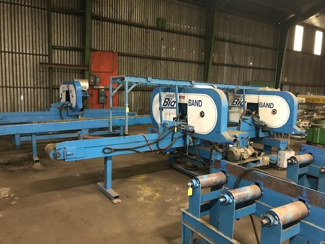 MULTI-HEAD RESAW W/(3) HEADS, 28" WHEELS, 20 HP MOTORS, HYDRAULIC DRIVEN BELTS & FEED ROLLS W/3 HP HYDRAULIC UNIT, SPARE BANDSAWS