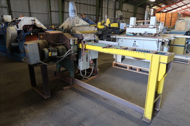 STRAIGHT LINE RIP SAW W/20 HP MOTOR, FEED ROLL W/SKK GEARHEAD MOTOR, INFEED ROLLCASE, OUTFEED BELT