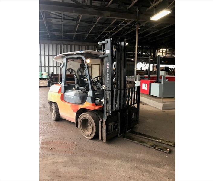 APPROX. 8,000 LB CAPACITY FORKLIFT, DIESEL ENGINE, 147" 2-STAGE MAST W/FORK POSITIONING, SIDE SHIFT, 48" FORKS, DUAL SOLID TIRES