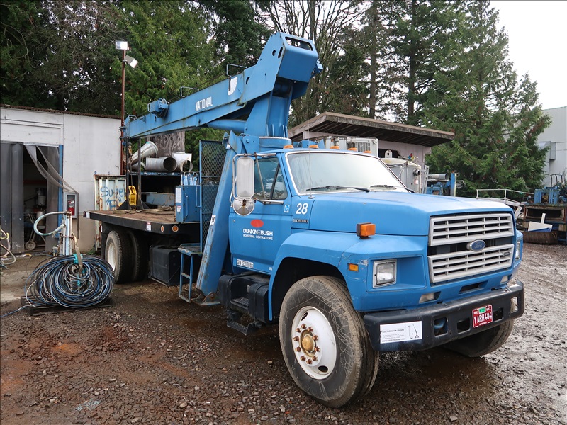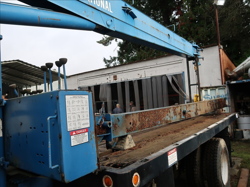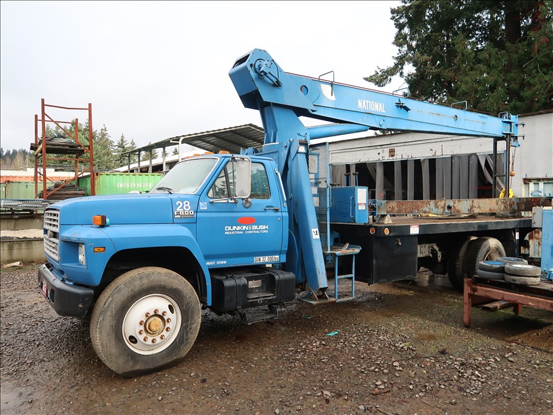 FLATBED CRANE TRUCK, DIESEL WITH NATIONAL 556B CRANE BOOM, 25,000LB CRANE, 3-SECTION BOOM WITH JIB, LOAD ANTI-TWO BLOCK