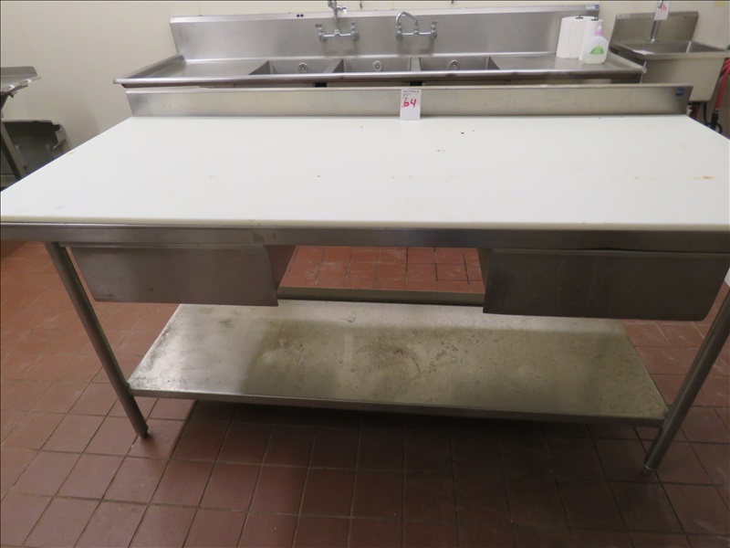 72" SS WORK TABLE W/2-DRAWERS , LOWER SHELF & POLY TOP