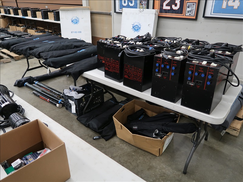 ASSORTED STANDS, POWER SUPPLIES, AND LIGHTING UMBRELLAS