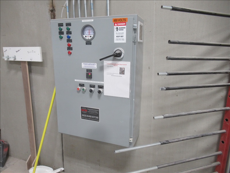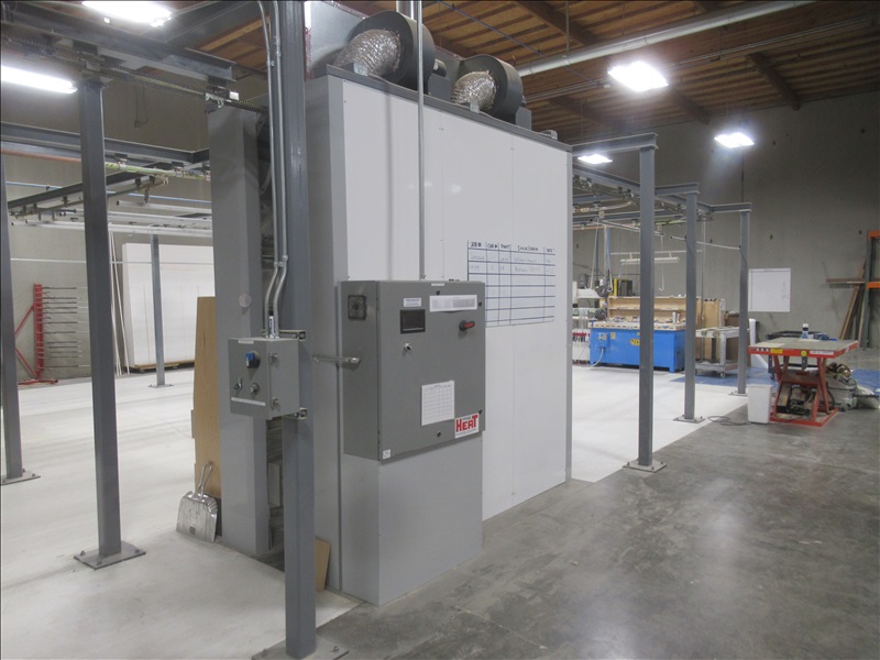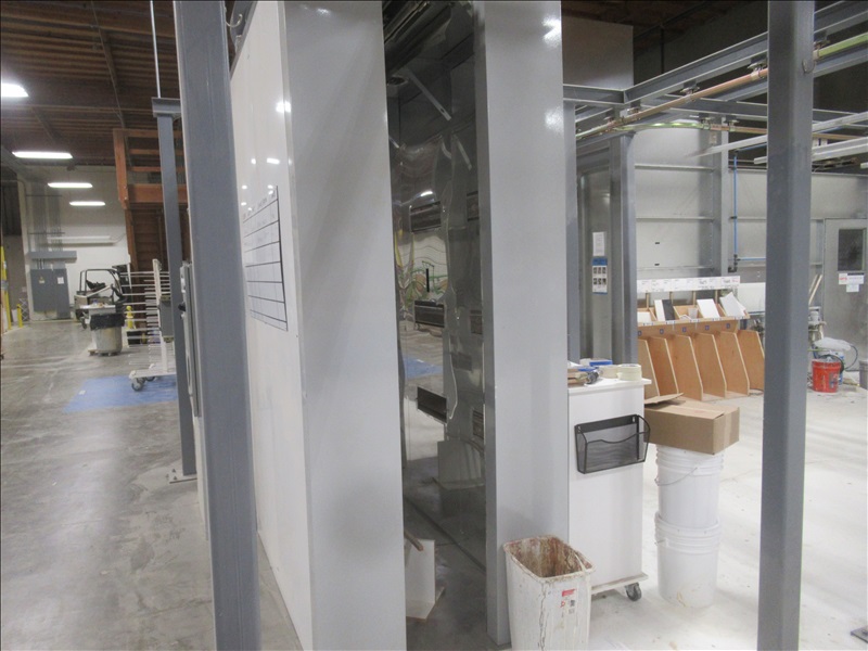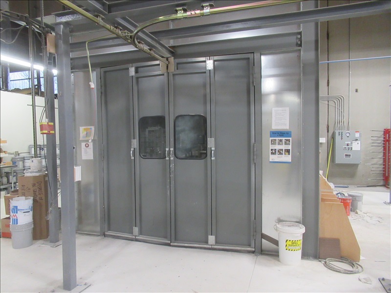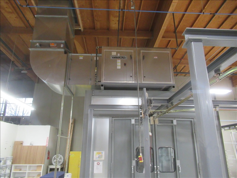 PAINT SYSTEM TO INCLUDE: GLOBAL FINISHING SOLUTION MODEL CDG-1209-PSP-15-S-C-XB-1C-S 10’X20’ BOOTH, TITAN MAKE UP AIR OVERHEAD TROLLEY SYSTEM, PRIME HEAT HALOGEN DRYING TUNNEL, (2) KREMLIN REXSON PAINT PUMPS
