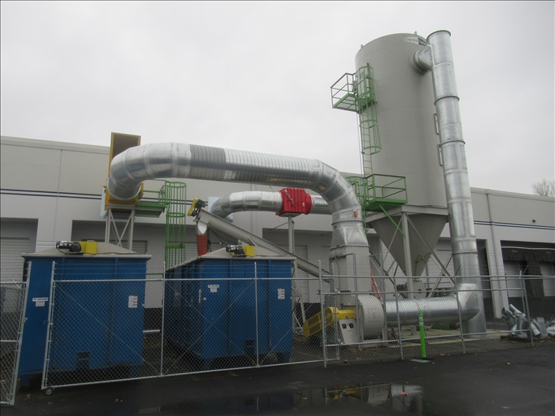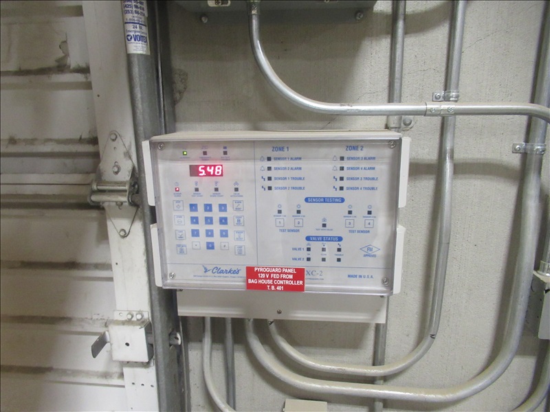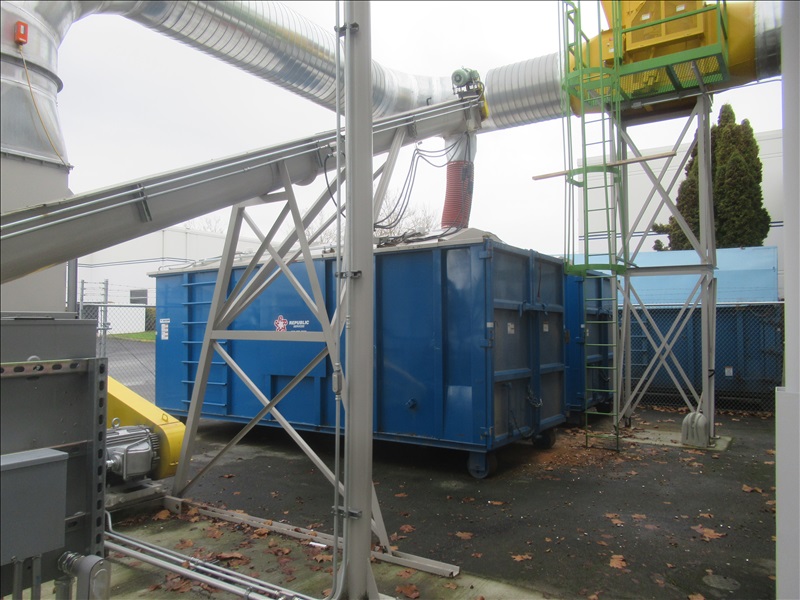 BAGHOUSE TO INCLUDE: CLARKES ABORT GATE, CLARK PYROGUARD LXC-2 SUPPRESSION SYSTEM, 30,000 CFM, (2) WASTEQUIP 40 YD DUMPSTERS W/AUGER TOPS, TWIN CITY 100 HP BLOWER, AUGER CONVEYOR, GARDNER DENVER BLOWER