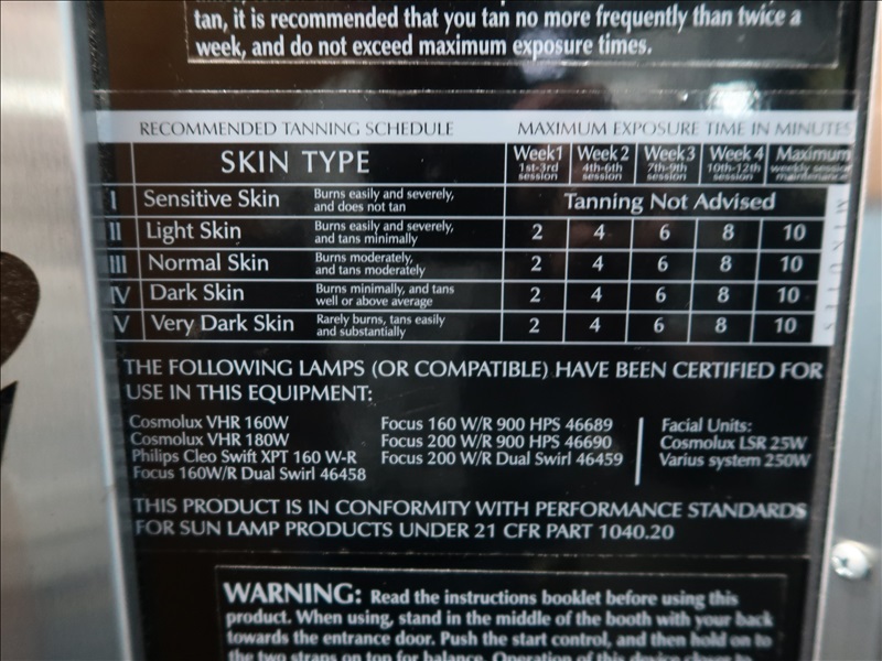 STANDING TANNING BED, DIGITAN STOP/START/FACIAL/VENT CONTROLS, 3 PHASE