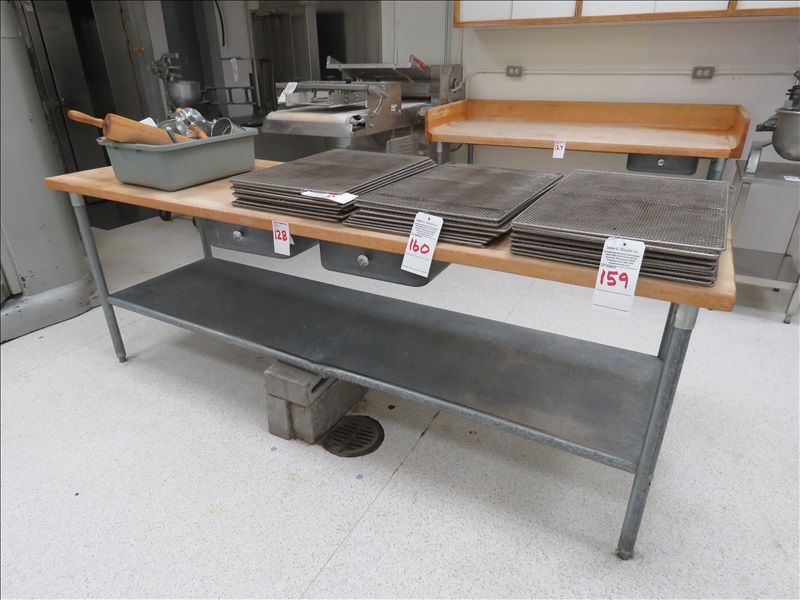96" BUTCHER BLOCK BAKERS TABLE W/SHELF & (2) DRAWERS