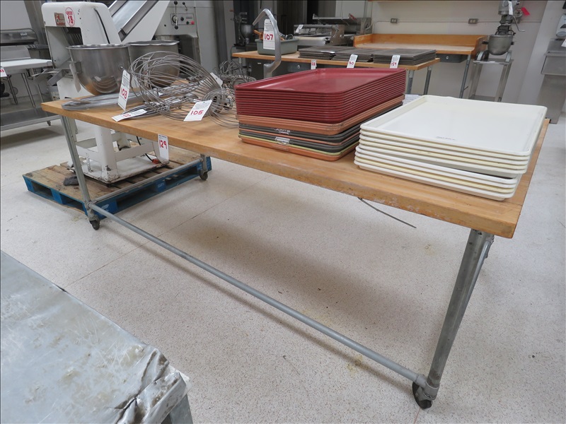 48" X 96" BUTCHER BLOCK BAKERS TABLE ON CASTERS