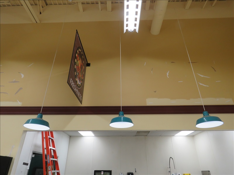 LOT, (3) CEILING MOUNTED HANGING LIGHTS OVER SEAFOOD CASE