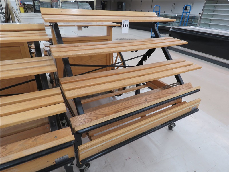 MULTI-TIERED WOOD DISPLAY RACK ON CASTERS