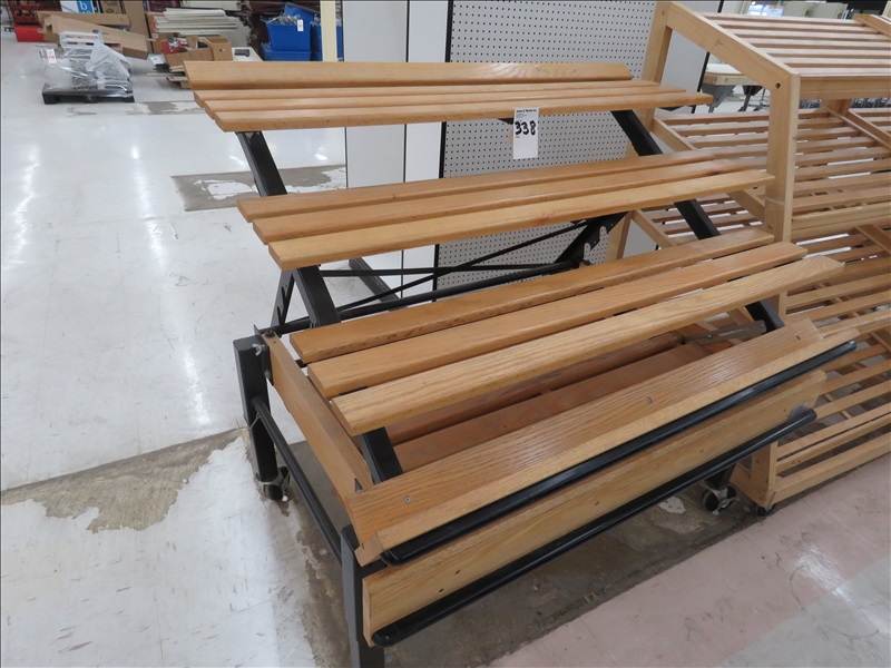 MULTI-TIERED WOOD DISPLAY RACK ON CASTERS