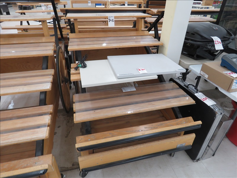 MULTI-TIERED WOOD DISPLAY RACK ON CASTERS