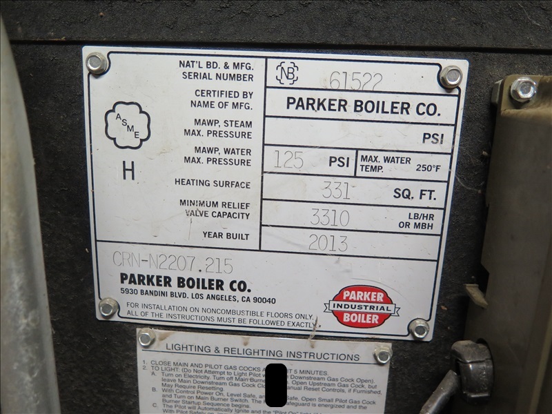 25 HP STEAM BOILER, 1,075,000 BTU, 100 PSI, PROPANE (GAS LINE BREAKS @ 1ST COUPLER, $250 REFUNDABLE DEPOSIT REQUIRED FOR GAS LINE CAP, WATER LINE BREAKS @ 1ST COUPLER, POWER BREAKS @ SAFETY SWITCH, SAFETY SWITCH STAYS W/BLDG)