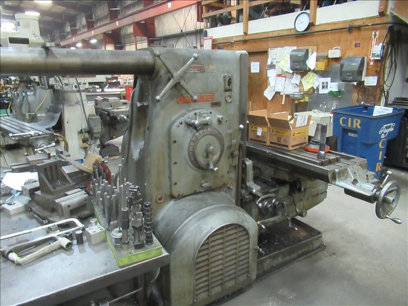 HORIZONTAL MILL W/VERTICAL HEAD, (ARBORS IN CONTAINER), 18" X 96" TABLE, VISE & TOOLING