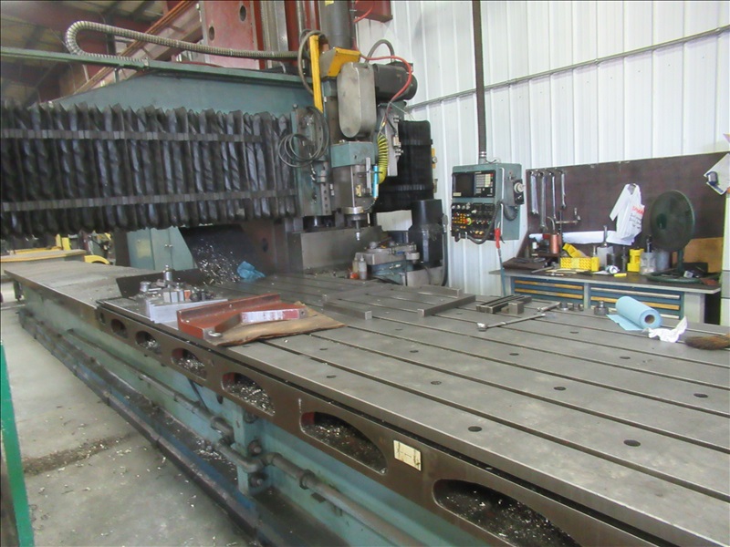 60" X 240" OPEN SIDE PLANER MILL W/YANCEY RAIL HEAD, 60" VERTICAL, 108" ARM, YANCEY SIDE HEAD, GN11 SERIES CONTROLS, RIGHT ANGLE HEAD (4) STANLEY TOOLBOXES & TOOLING